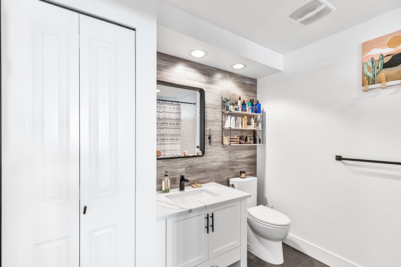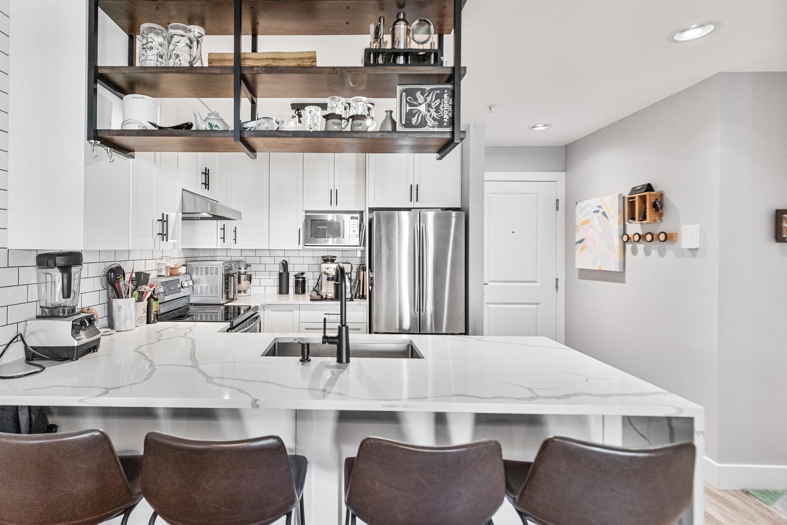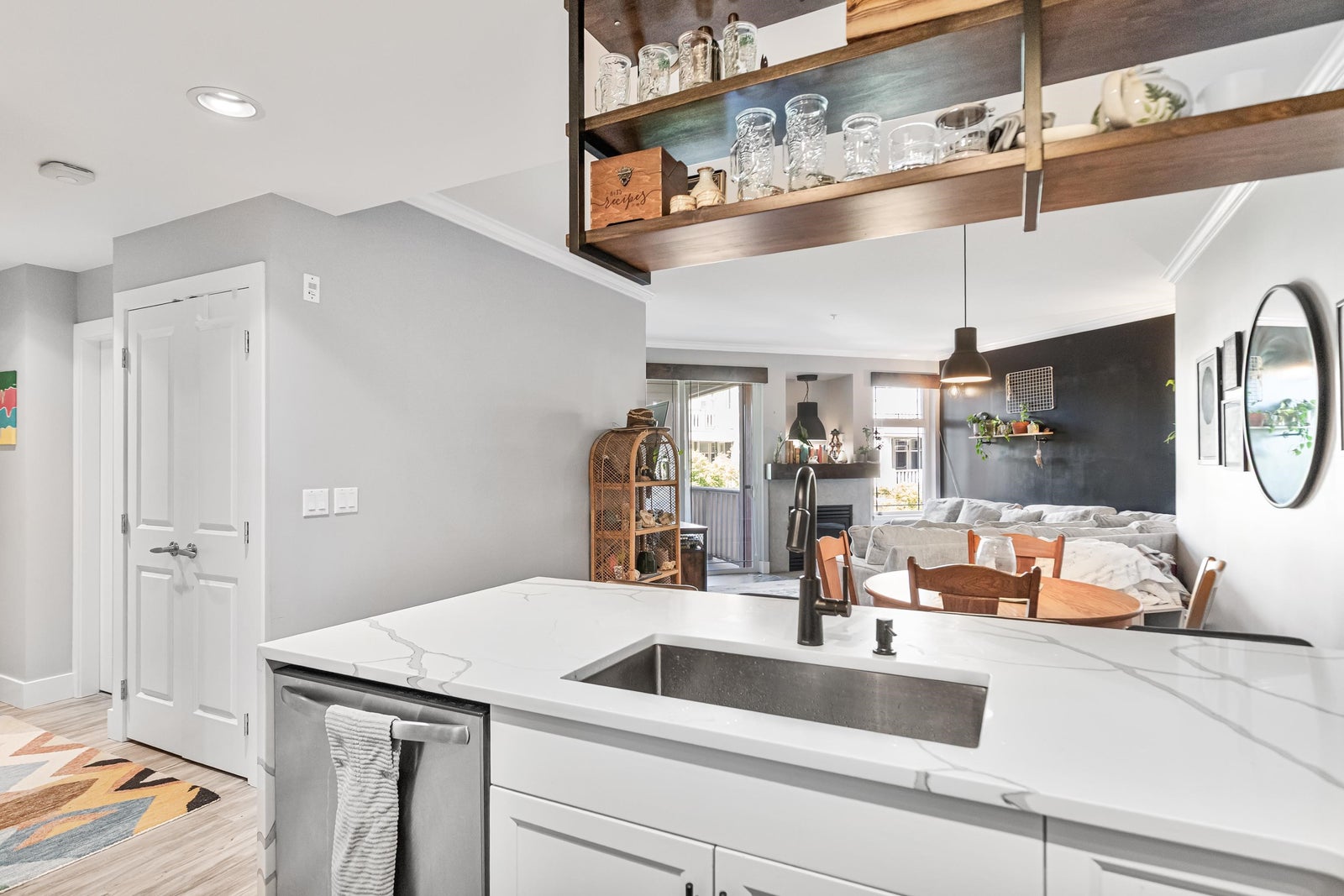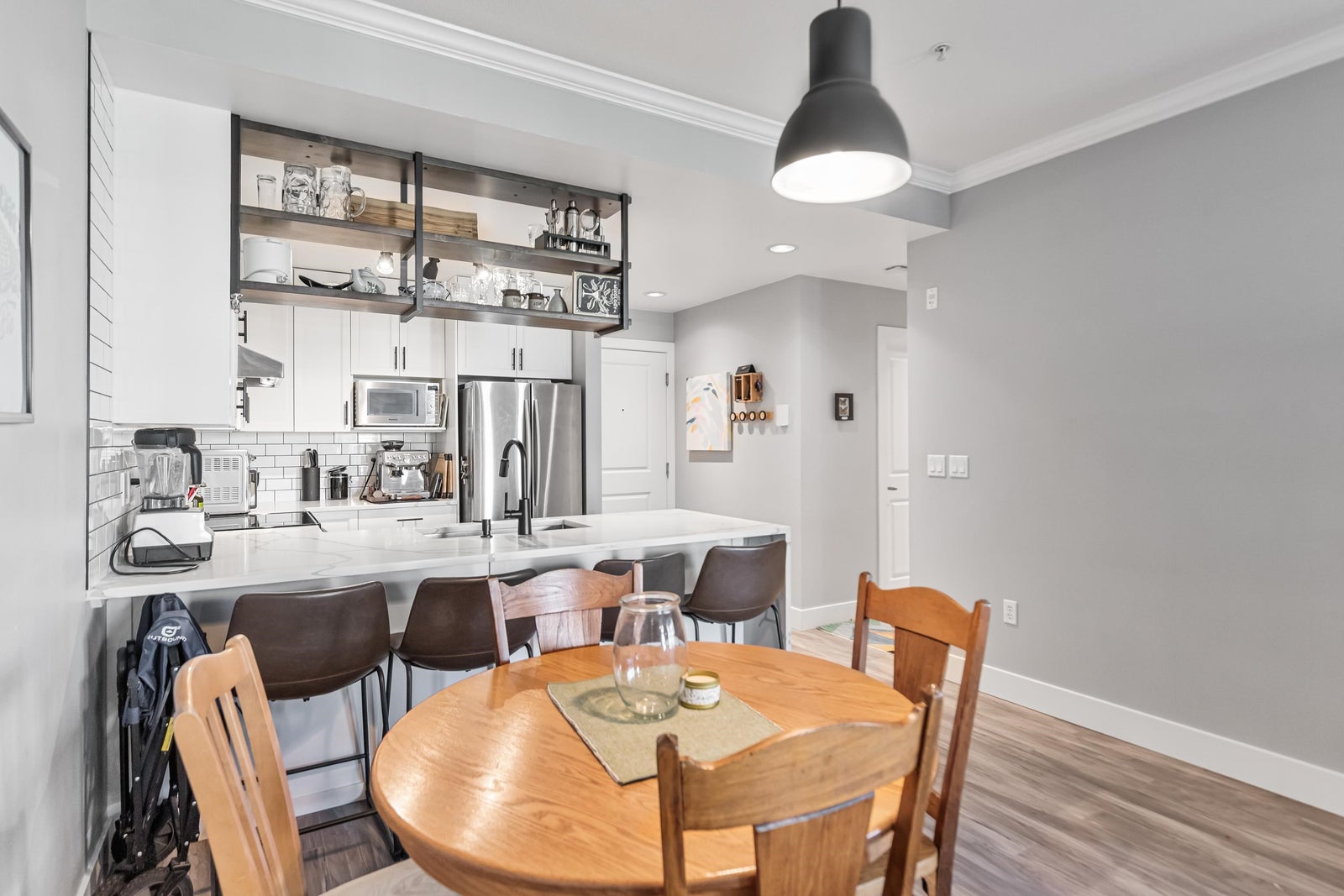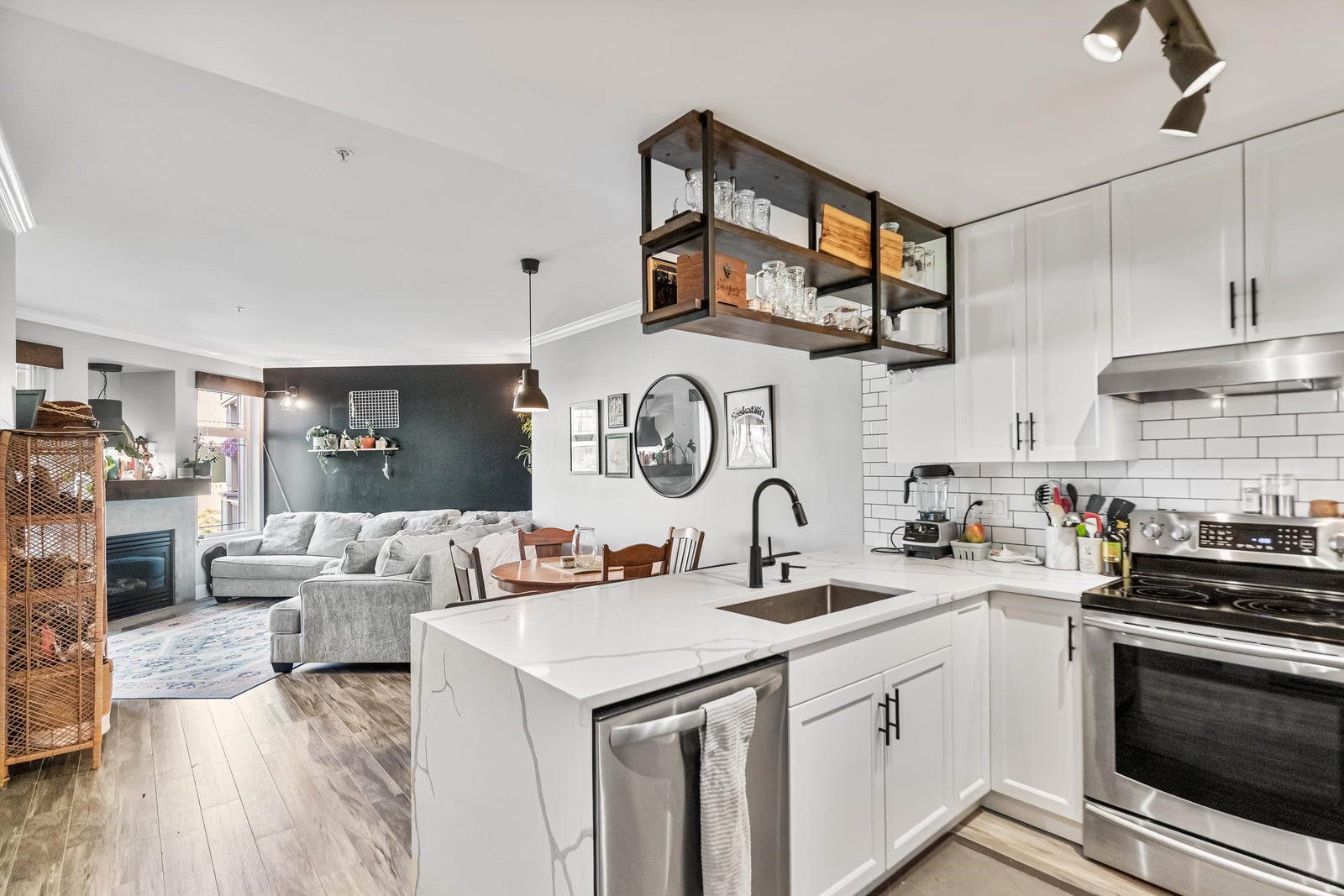 Welcome to Ocean Bay Villas, located in the heart of South Surrey! This extensively renovated 2 bedroom & 2 bathroom unit is turn key and ready for its next owner! The main area features open concept living with a fully updated kitchen overlooking the dining area and spacious living room. Cozy up to the gas fireplace during winter & enjoy the SW facing balcony overlooking the beautifully landscaped common area in the warm months. Equipped with spacious bedrooms & fully renovated bathrooms with trendy finishings. 2 side x side parking stalls included. Fantastic amenities, including a guest suite, gym & amenities room. Located steps to shopping, restaurants, Peace Arch Hospital, transit & a short distance to the fantastic White Rock promenade. Don't miss out!