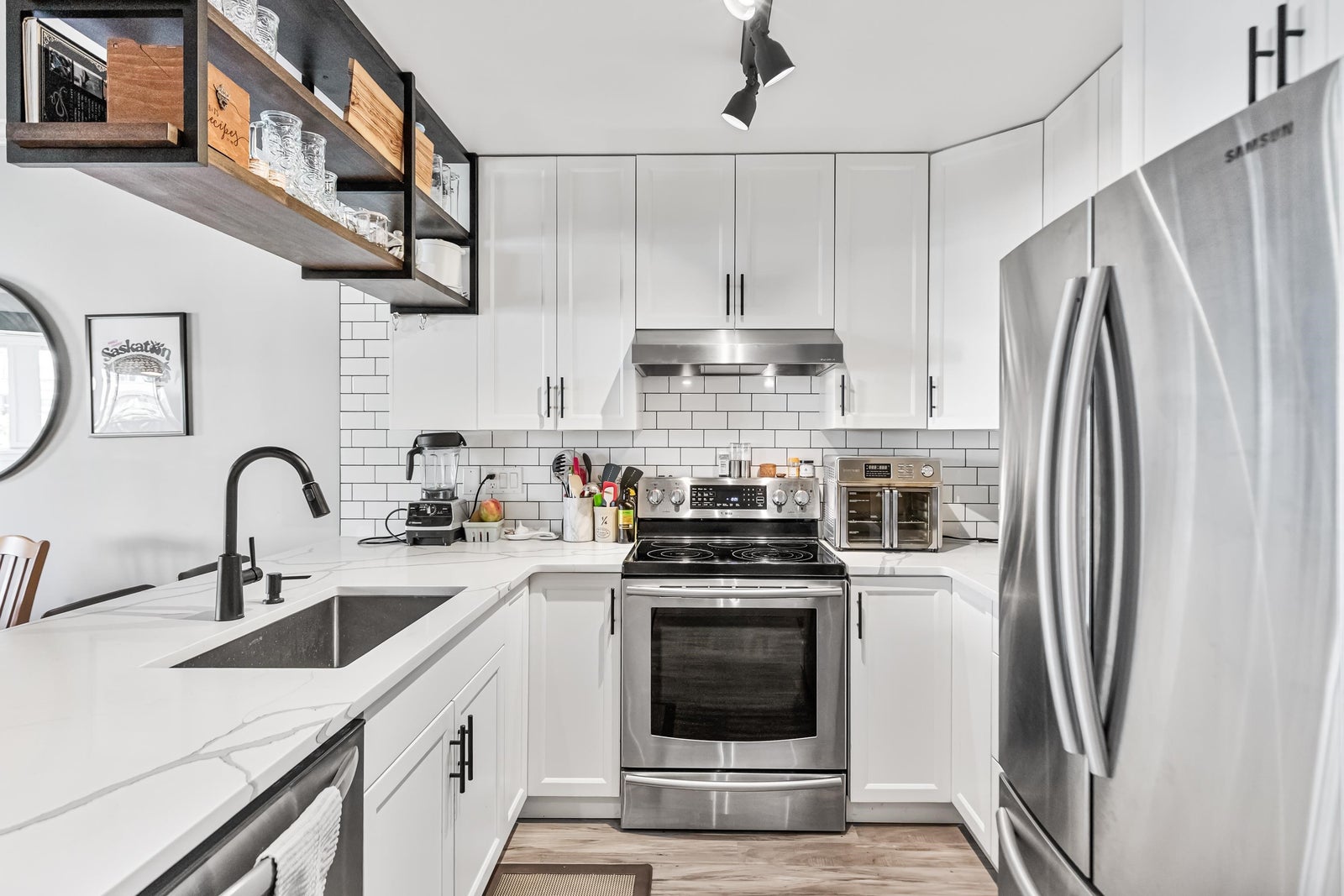 Washer/Dryer, Dishwasher, Refrigerator, Stove
